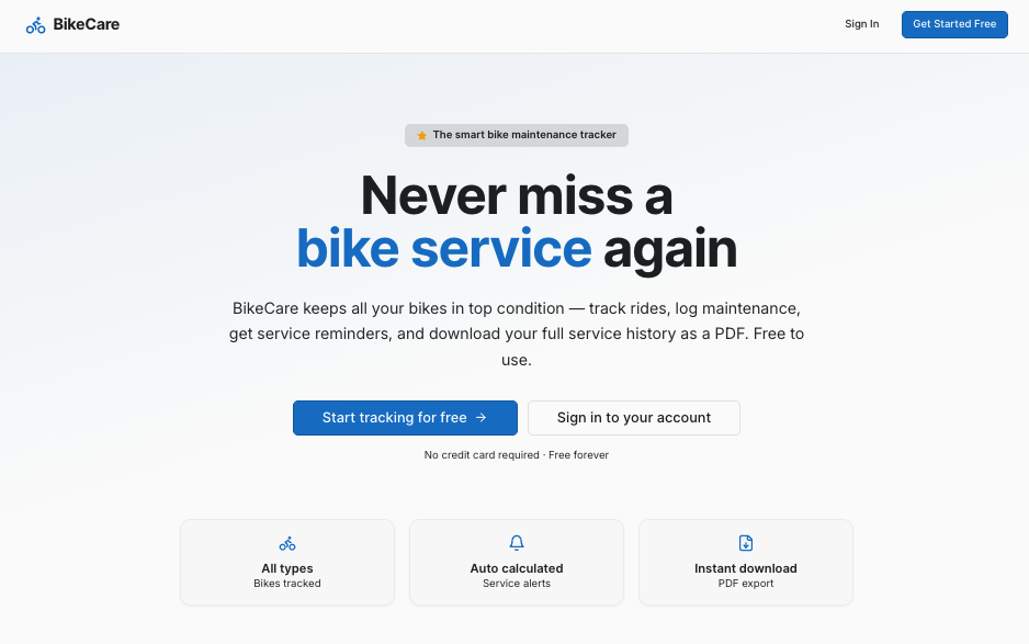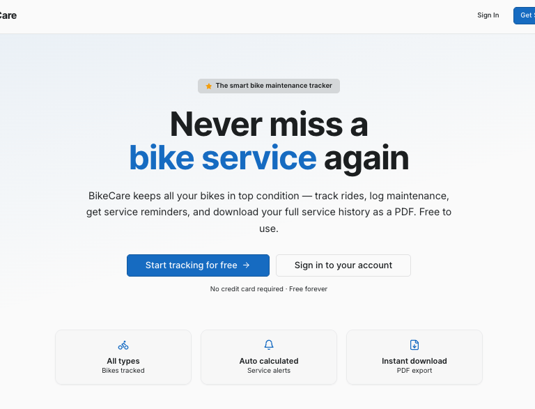 BikeCare helps cyclists keep their bikes in peak condition. Track your rides, log maintenance, and receive timely service reminders so you never miss an important check again.